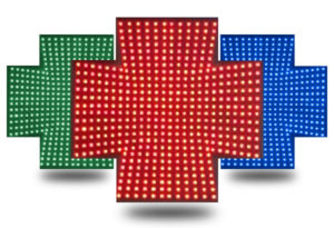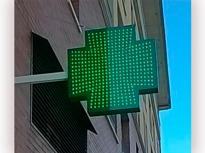 La cruz de farmacia Norma está fabricada con leds de vídeo de alto brillo. Existen dos tipos de cruces Norma: la verde y la roja.